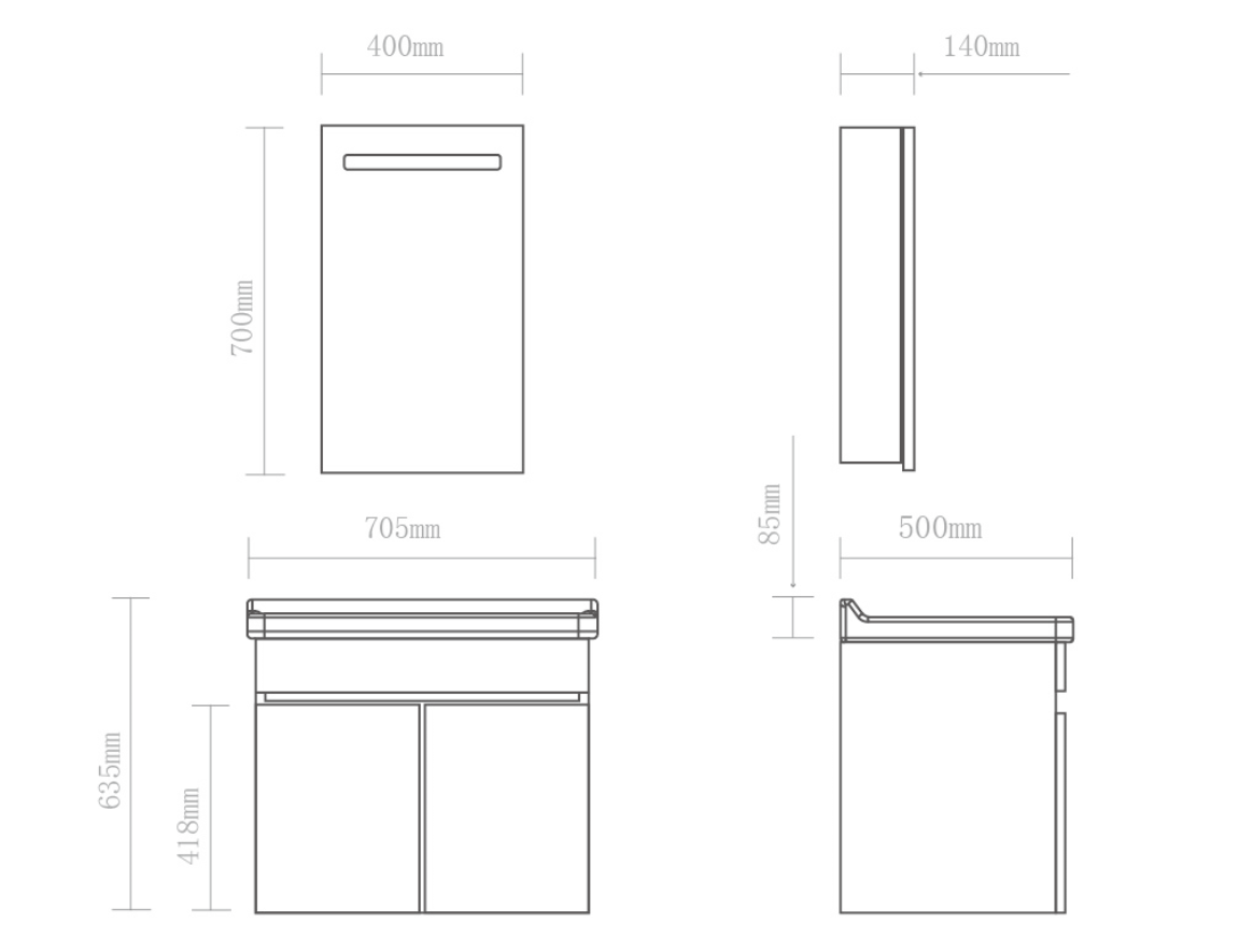 尺寸:化妝鏡 400X700X140 (mm)+浴室柜 705X500X635 (mm)材質(zhì):鋁合金